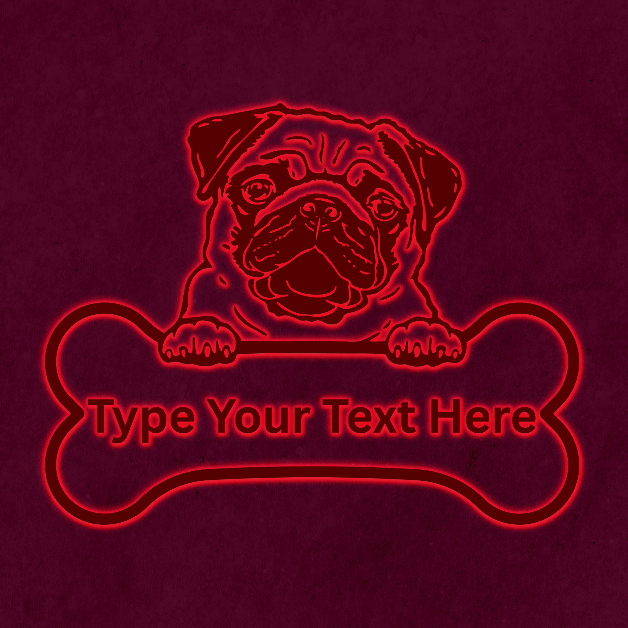 Light up your love for pugs with our Personalized LED Pug Bone Sign!